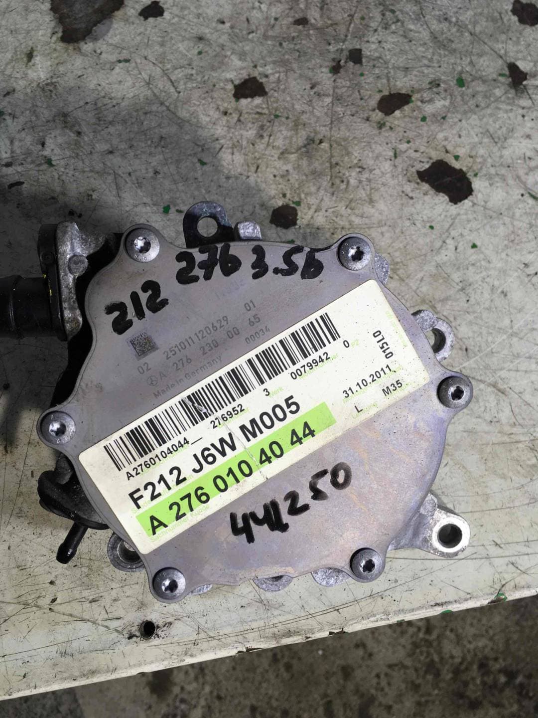 Применимость детали «Вакуумный насос Mercedes-Benz E W2122762300065,A2762300065»